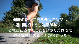 健康のために行うランニングは週1回だけでも効果あり。それどころか6分歩くだけでもやる気を高める